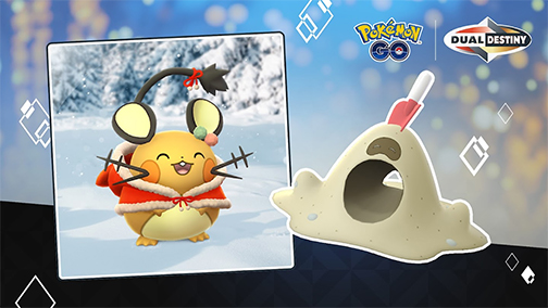 - Amistad invernal Captura a Dedenne con atuendo festivo.