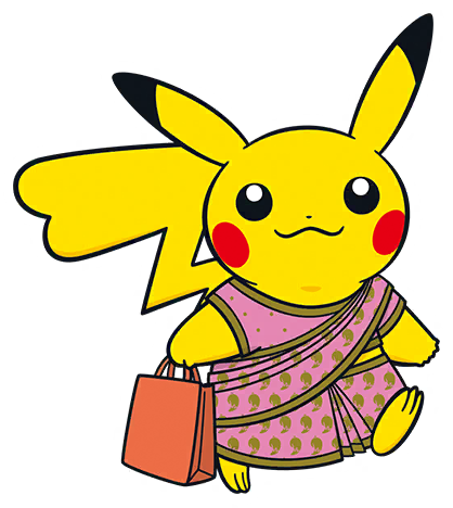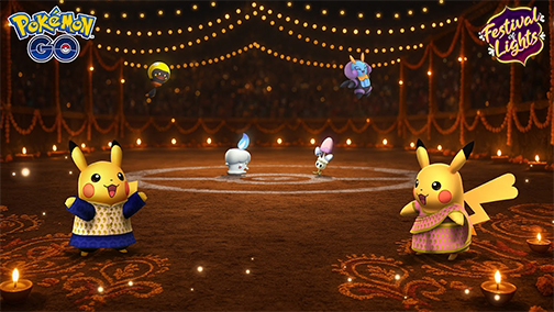 Litwick, Morelull, Ponyta, Chinchou, Tadbulb, Volbeat, Pikachu con sari y Pikachu con kurta.