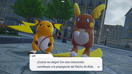 Tras derrotarla en combate, Loli te ofrece intercambiar su Raichu de Alola por un Raichu.