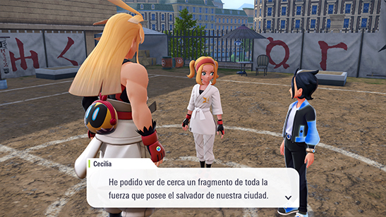 Cuando estés preparado, reta a Cecilia del Círculo Justiciero a un combate. Todos los Pokémon de Cecilia son de tipo Lucha.