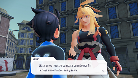 Justo entonces aparece Albar corriendo en el dojo. Parece que su hermana pequeńa, Inma, ha desaparecido. Le pides tener el combate de ascenso, y Albar te cuenta entonces que no tiene SmartRotom para comprobar la Aplicación Z.A. porque siempre se le rompen. De esas cosas se ocupa su hermana, pero no la ve desde el día anterior.