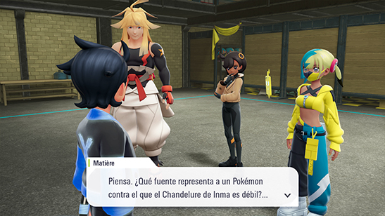 Al final de las alcantarillas se encuentra Inma con su Chandelure. Matičre deduce que no era un secuestro: se encuentra allí porque quiere. Para conocer la verdad, Inma te reta a un combate contra sus Pokémon. Matičre cura a tu equipo antes.