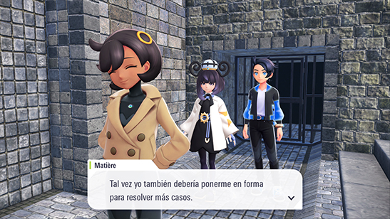 Termináis en una sala amplia, pero Chandelure no aparece. Matičre propone examinar la sala para ver si hay algo sospechoso. Inspecciona las cajas, las tuberías y demás paredes sin éxito.