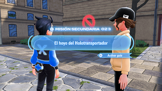 Cuando estés preparado, reta al Pokémon que obstaculiza el funcionamiento del Holotransportador. Puedes capturarlo si quieres. Tras completar la misión puedes usar el Holotransportador.