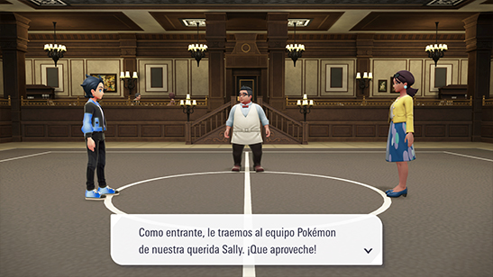 Cuando estés preparado, confirma a Wilfredo que aceptas el reto consistente en derrotar a 3 Entrenadores seguidos sin poder curar a tus Pokémon. El primero de los combates tiene lugar contra la Gastrónoma Sally, que usa los siguientes Pokémon: