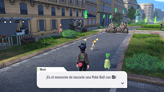 Tras derrotar a Muni, te pide que empieces a orientarte por Ciudad Luminalia con la ayuda del mapa en tu SmartRotom. Se marcha para llevarte al Centro Pokémon más cercano.
