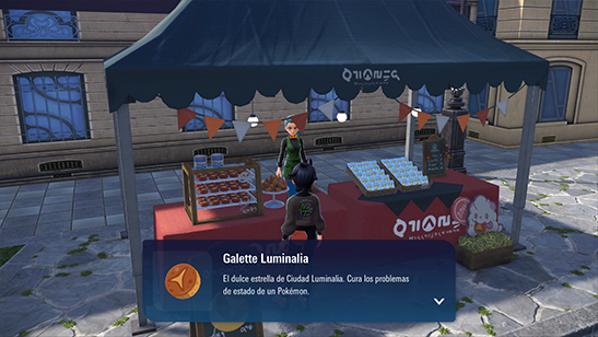En la Zona Salvaje 1 puedes conseguir 5 Pociones hablando un chico en la hierba. Más adelante una dependienta en un puesto callejero te regala una Galette Luminalia.
