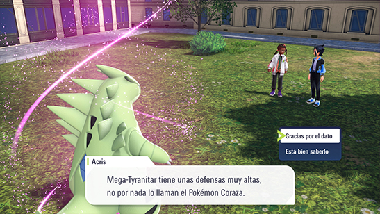 Una vez has derrotado a Mega Tyranitar obtienes la Tyranitarita, que te permite megaevolucionar a tu Tyranitar. Acris cura a tu equipo de Pokémon antes de marcharse.