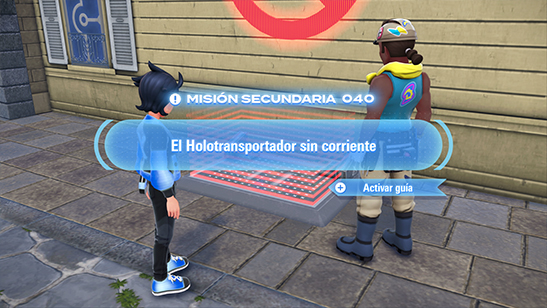 Debes sacar un Pokémon que conozca un movimiento de tipo Eléctrico y atacar el Holotransportador con ese movimiento para recargarlo de energía eléctrica. Tras completar la misión puedes usar el Holotransportador.
