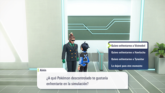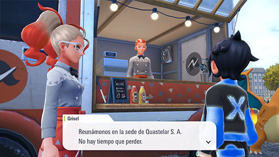 Mientras Airén te felicita, recibe una llamada en su SmartRotom: Yveltal ya ha alcanzado la ciudad. Lo han avistado en el tejado de la Galería Claro de Luna, en el Distrito Rojo.