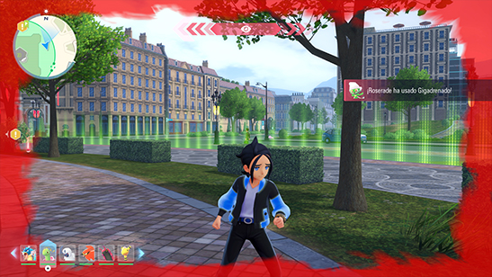 » El dańo que recibe el jugador de los ataques depende del Nivel del Pokémon y del ataque que haya usado. El jugador puede esquivar los ataques con volteretas.