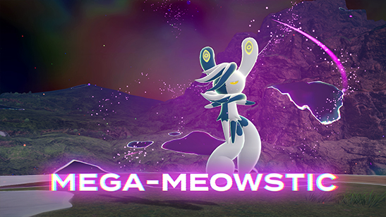 Mega Meowstic usa Bola Sombra para lanzar una bola sombría que persigue a los Pokémon, así como Teletransporte para moverse muy rápido por la zona, Reflejo para obtener una barrera defensiva, Psicorrayo para atacar a los Pokémon hacia delante, Fuerza Lunar para golpear a Pokémon cercanos y Espacio Raro, que genera un campo de fuerza a su alrededor y debes colocarte en el lateral vulnerable con tu Pokémon para evitar el dańo.