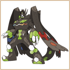 Zygarde Forma Completa Zygarde Complete Forme | La forma definitiva que adopta Zygarde cuando sus núcleos logran reunir el 100% de las células. Si se cierne una amenaza sobre el ecosistema y los núcleos consideran que la Forma al 50% no es capaz de solventarla, Zygarde adoptará esta forma. ¡Se dice que su poder es mayor incluso que el de los Pokémon legendarios Xerneas e Yveltal! |  |