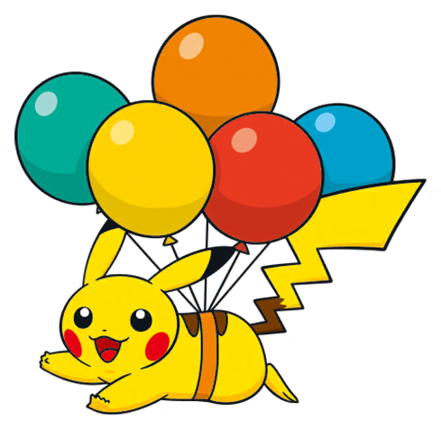 También aparecen Pikachu con Camiseta Batik, Pikachu Volador con Globos Negros y Pikachu con Globos Multicolor.