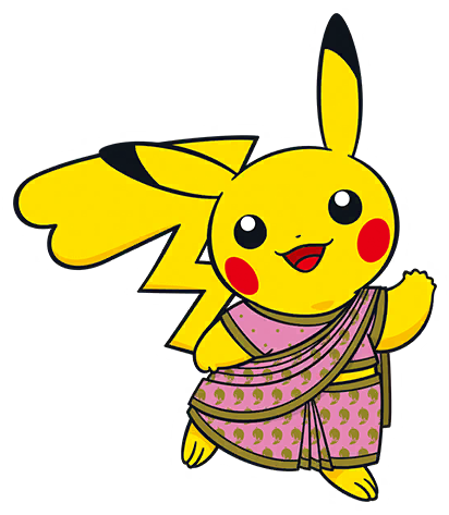 Litwick, Morelull, Ponyta, Chinchou, Tadbulb, Volbeat, Pikachu con sari y Pikachu con kurta.