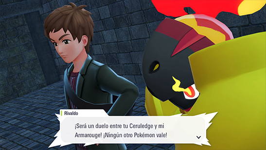 Cuando estés preparado y solo tengas un Armarouge o un Ceruledge (según tu elección) en tu equipo, reta al Entrenador Rivaldo a un combate.