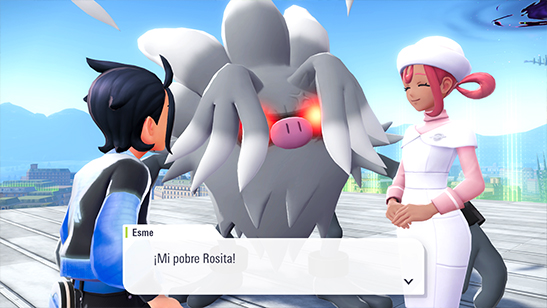 Sube al tejado usando el Holotransportador, y avanza por la azotea. Al final de la azotea se encuentra un Annihilape. Prueba a llamarle la atención con su nombre: Rosita.