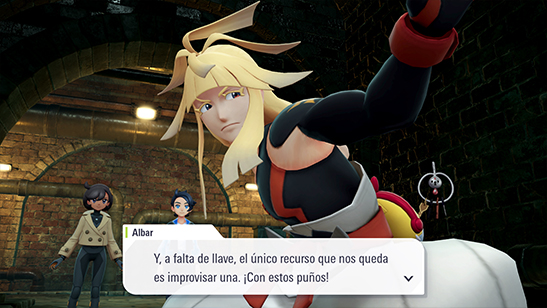 Finalmente, parece que Klefki no tiene la llave de la cerradura. Os queda el plan B: la fuerza bruta de Albar, que destruye la puerta de un solo golpe para que podáis seguir avanzando.