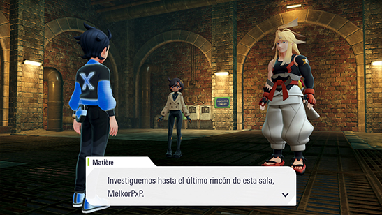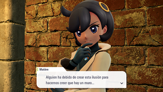 Termináis en una sala amplia, pero Chandelure no aparece. Matičre propone examinar la sala para ver si hay algo sospechoso. Inspecciona las cajas, las tuberías y demás paredes sin éxito.