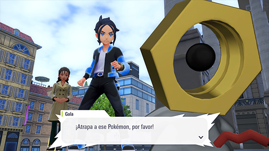 A Gala le preocupa un Pokémon que parece blando y resistente a la vez, y que cree que viene de otra dimensión. En ese momento aparecen Meltan y Gala te pide que lo captures.