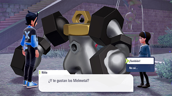 El llegar a la Zona Desconocida, una niña rodeada de Meltan te llama y te pide que vayas con ella. La niña te pregunta si te gustan los Meltan, y tras contestarla todos los Meltan se fusionan en Melmetal. La niña te pregunta entonces si te gustan los Melmetal.
