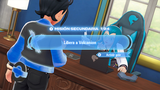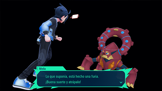 Cuando estés preparado, habla con Melia para tener un encuentro con Volcanion y poder capturarlo. Para ayudarte ha llamado a Yara, que por lo visto es una experta en este Pokémon tras haber estudiado información confidencial sobre Volcanion.