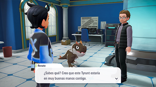 Renato te explica que en el Laboratorio Pokémon son capaces de restaurar Pokémon a partir de fósiles. En concreto, le gustan mucho dos: el Fósil Mandíbula y el Fósil Aleta.