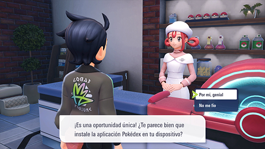 En el Centro Pokémon te espera Muni, y te pide que hables con la enfermera en el mostrador. La enfermera se da cuenta de que eres novato, así que te ofrece participar en una promoción que consiste en registrar 5 Pokémon en la Pokédex.