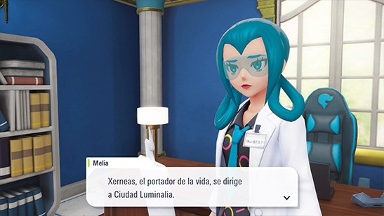 Tras la conversación con L en el Hotel Z y siguiendo la sugerencia de Acris, vas al Laboratorio Pokémon a preguntar a Melia por "el que da".