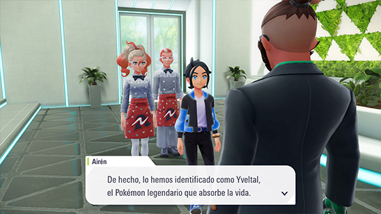 Mientras Airén te felicita, recibe una llamada en su SmartRotom: Yveltal ya ha alcanzado la ciudad. Lo han avistado en el tejado de la Galería Claro de Luna, en el Distrito Rojo.