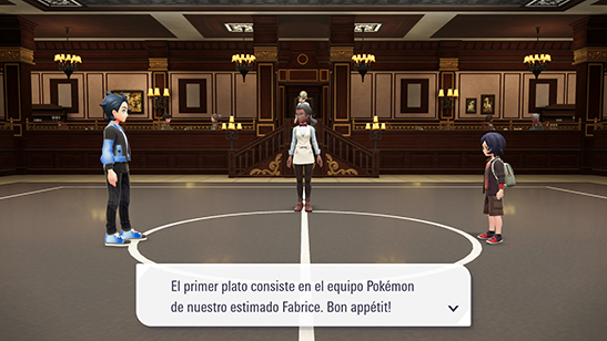 El segundo de los combates tiene lugar contra el Gastrónomo Fabrice, que usa los siguientes Pokémon, todos ellos con el objeto Piedra Dura equipado: