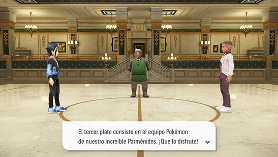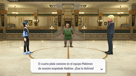 Cuando estés preparado, confirma al jefe de sala que aceptas el reto consistente en derrotar a 10 Entrenadores seguidos sin poder curar a tus Pokémon.