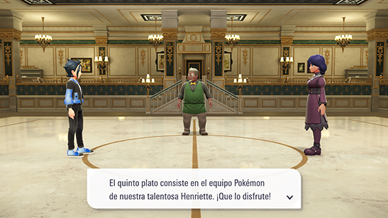 El sexto de los combates tiene lugar contra la Gastrónoma Henriette, que usa los siguientes Pokémon, todos ellos con el objeto Restos equipado: