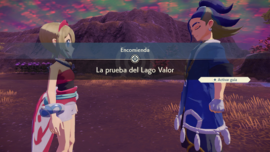 Dirígete al Lago Valor, en el Pantanal Carmesí, y supera la prueba del Pokémon que lo custodia con el fin de hacerte con la Cadena Roja.