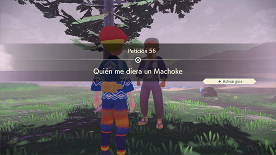 Tras leer la entrada de Machoke en la Pokédex, Bonsi te ha pedido que esperes mientras intenta convencer a Machoke de que se una.