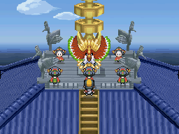 La primera vez que llegues a la azotea de la Torre Campana, tras haber subido 10 plantas y haber mostrado tu valía con la Campana Clara y el Ala Arcoiris, te encontrarás con que las Chicas Kimono rinden culto al Pokémon legendario Ho-Oh.