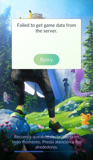 | Esta pantalla aparece cuando hay un error de carga de un combate, por ejemplo cuando tratas de combatir en un Gimnasio que acaba de ser derrotado por otro jugador. |
