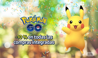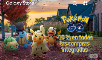- Samsung Galaxy Store: Esta tienda ofrece ocasionalmente descuentos del 10% al 20% del precio de las Pokémonedas o de los Objetos en Venta Directa. Cuando esto ocurre, saldrá un aviso de la promoción en la propia tienda, informando del período de duración de la oferta. El precio reducido no se puede ver en Pokémon GO, sino que tienes que proceder a hacer checkout (antes de confirmar la compra) para ver el precio final con el descuento aplicado.