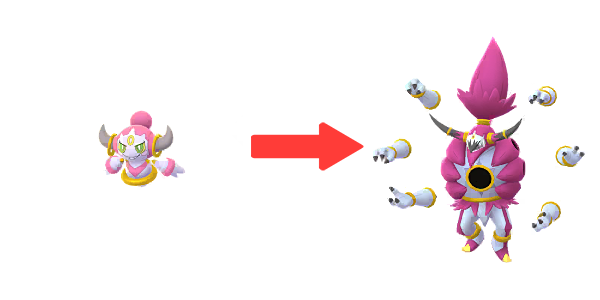 - Reversión: Puedes devolver a Hoopa Forma Desatada de vuelta a su Forma Contenida pagando 2.000 Polvoestelar y 10 Caramelos Hoopa.