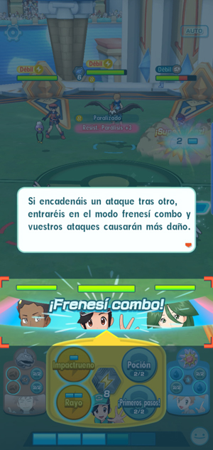 También se puede rellenar el combinómetro cuando se entra en un frenesí combo, en el que los ataques pueden ser interrumpidos y hacen más dańo, pero alargan la duración del frenesí si son supereficaces o críticos. Cuando el combinómetro se llena del todo se lanza el Ataque Combinado.