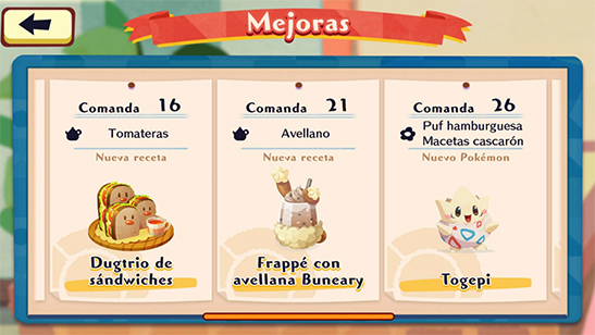Comandas Ordinarias en Pokémon Café Mix:El principal modo de juego de Pokémon Café Mix es jugar Comandas Ordinarias, mediante el cual irás desbloqueando Mejoras de la Cafetería y con ello Pokémon y Componentes. En esta sección tienes la información sobre esta modalidad de juego.Las Comandas Ordinarias funcionan de la siguiente manera: