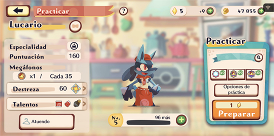 - Talentos: Los Pokémon tienen 3 talentos que deben ir desarrollando al subir de nivel. Estos Talentos ayudan a retirar algunos Componentes más fácilmente.