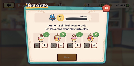 Cada Pokémon puede usar 4 Tartaletas: la de su especialidad y las raras. Reserva las Tartaletas Raras para cuando se acaben las otras.
