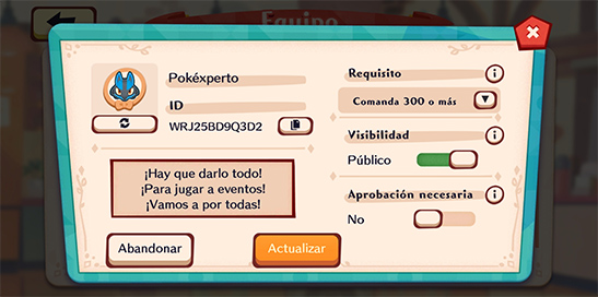 ID: Tras crear el equipo verás un ID que puedes copiar en el portapapeles. Comparte este ID con tus amigos para que se unan al equipo.