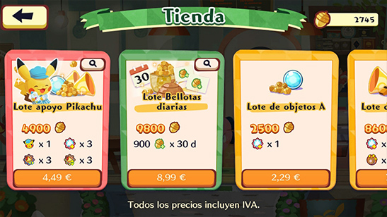 Nota: No podrás comprar productos con Micropagos si ya tienes 300 000 o más Bellotas, o si al hacerlo superas el máximo permitido de 999 unidades de cada Potenciador o Ayudita.