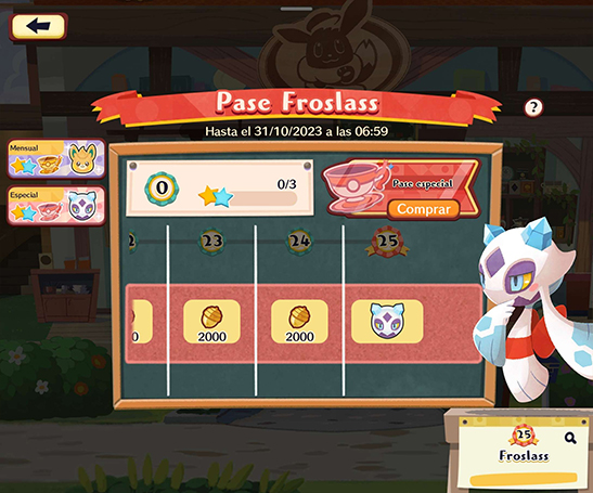 Los premios de este pase son Froslass y 15.000 Bellotas.