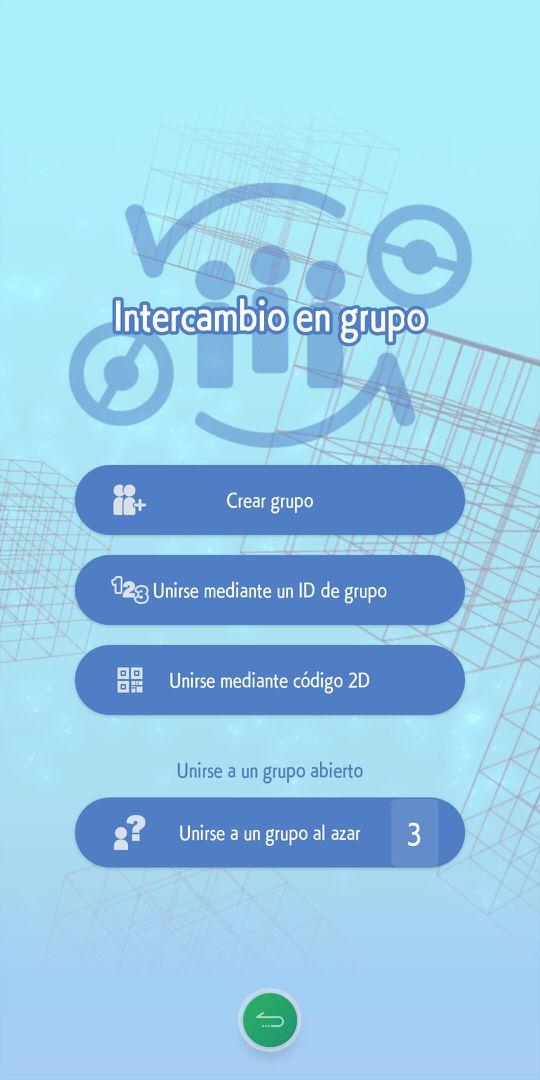 Con el intercambio en grupo puedes crear un grupo de hasta 20 participantes para realizar intercambios entre las personas que estén en él. No sabes qué Pokémon vas a recibir hasta que el intercambio se haya completado de manera automática y aleatoria, aunque puedes ver qué otros Pokémon depositan los miembros del grupo para decidir qué Pokémon depositas tú.