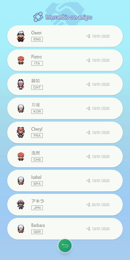 - Intercambio con Amigos: Intercambia Pokémon con Amigos que hayas ańadido a tu agenda.