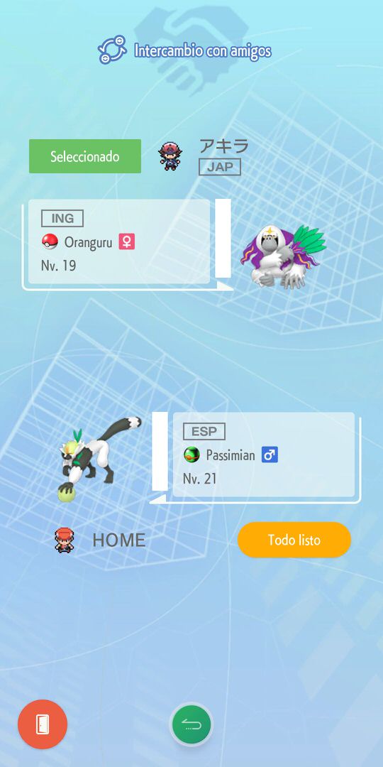 - Pokémon: Ves el Pokémon que cada jugador pone para intercambiar.