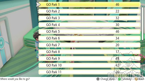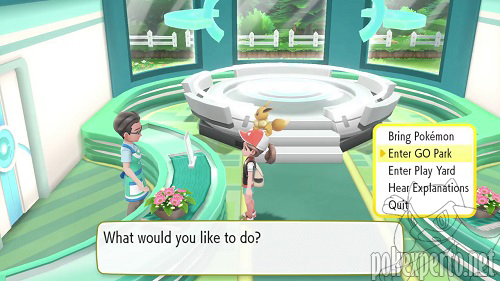 - Destino del Pokémon: Los Pokémon transferidos a Pokémon Let's GO llegan al GO Park, donde los debes volver a capturar para que pasen a formar parte de tu equipo. El GO Park tiene capacidad para 20 parques de 50 Pokémon cada uno (1000 Pokémon en total).